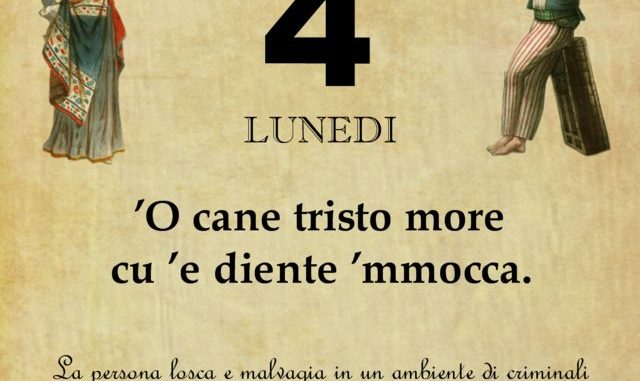 ’O cane tristo more cu ’e diente ’mmocca. La persona losca e malvagia in un ambiente di criminali è destinato a morire giovane.O PRUVERBIO D O JUORNO. Lunedì 4 maggio 2020
