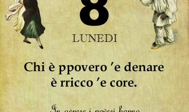 ‘O PRUVERBIO D’ ‘O JUORNO. Lunedì 8 aprile 2019 08/04/2019 binews.it ATTUALITA', EVIDENZA, Il Proverbio del Giorno 0 di Gianni Polverino Chi è ppovero ’e denare è rricco ’e core. In genere i poveri hanno un cuore generoso.