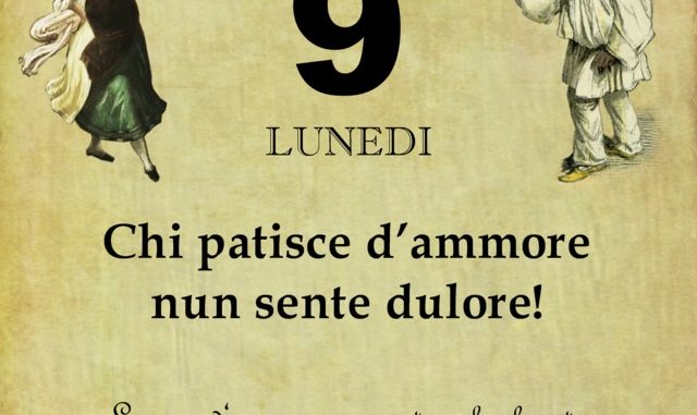 ‘O PRUVERBIO D’ ‘O JUORNO. Lunedì 9 dicembre 2019 09/12/2019 binews.it ATTUALITA', EVIDENZA, SANT'Oggi 0 di Gianni Polverino Chi patisce d’ammore nun sente dulore! Le pene d‘amore si sopportano facilmente.