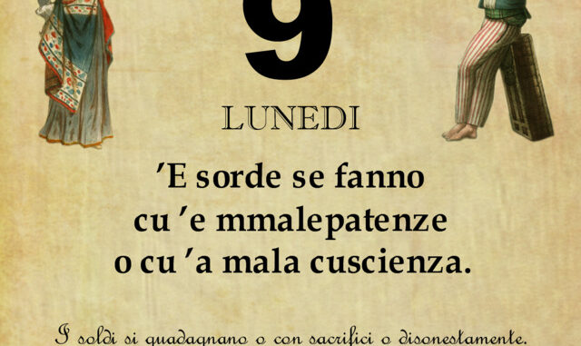 ‘O PRUVERBIO D’ ‘O JUORNO. Lunedì 9 novembre 2020 09/11/2020 binews.it ATTUALITA', EVIDENZA, Il Proverbio del Giorno 0 di Gianni Polverino ’E sorde se fanno cu ’e mmalepatenze o cu ’a mala cuscienza. I soldi si guadagnano o con sacrifici o disonestamente.