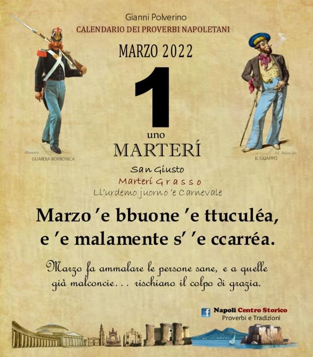 ‘O PRUVERBIO D’ ‘O JUORNO. Martedì 1 marzo 2022