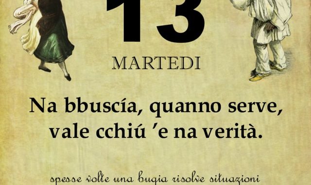 ‘O PRUVERBIO D’ ‘O JUORNO. Martedì 13 agosto 2019 13/08/2019 binews.it ATTUALITA', EVIDENZA, Il Proverbio del Giorno 0 di Gianni Polverino Na bbuscía, quanno serve, vale cchiú ’e na verità. Spesse volte una bugia risolve situazioni difficili e molto complicate.