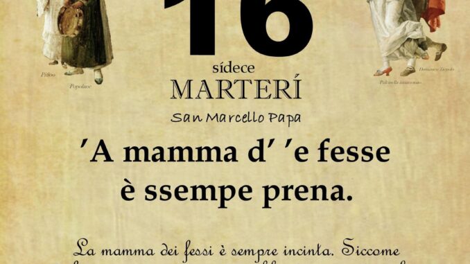 ‘O PRUVERBIO D’ ‘O JUORNO. Martedì 16 gennaio 2024 16/01/2024 binews.it ATTUALITA', EVIDENZA, IRPINIA 0 di Gianni Polverino ’A mamma d’ ’e fesse è ssempe prena. La mamma dei fessi è sempre incinta. Siccome di fessi ce ne sono sempre in abbondanza, si dice che la mamma dei fessi è sempre incinta.