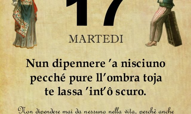 ‘O PRUVERBIO D’ ‘O JUORNO. Martedì 17 febbraio 2020 17/03/2020 binews.it ATTUALITA', EVIDENZA, Il Proverbio del Giorno 0 di Gianni Polverino Nun dipennere ’a nisciuno pecché pure ll’ombra toja te lassa ’int’ô scuro. Non dipendere mai da nessuno nella vita, perchè anche la tua ombra ti abbandonerà, quando sarai al buio.