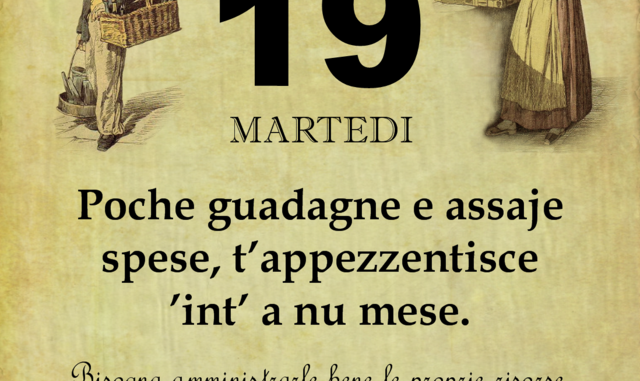O PRUVERBIO D’ ‘O JUORNO. Martedì 19 giugno 2018 19/06/2018 binews.it ATTUALITA', Il Proverbio del Giorno 0 di Gianni Polverino Poche guadagne e assaje spese, t’appezzentisce ’int’ a nu mese. Bisogna amministrarle bene le proprie risorse, spendendo adeguatamente alle proprie entrate.