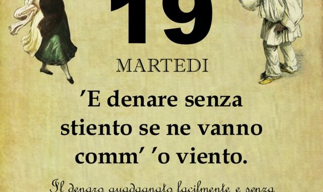 ‘O PRUVERBIO D’ ‘O JUORNO. Martedì 19 novembre 2019 19/11/2019 binews.it ATTUALITA', EVIDENZA, Il Proverbio del Giorno 0 di Gianni Polverino ’E denare senza stiento se ne vanno comm’ ’o viento. Il denaro guadagnato facilmente e senza sudore va via molto rapidamente.