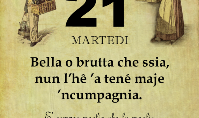 Bella o brutta che ssia, nun l’hê ’a tené maje ’ncumpagnia. E’ sempre meglio che la moglie conduca una vita ritirata.