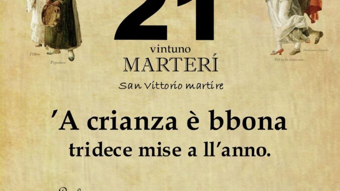 ‘O PRUVERBIO D’ ‘O JUORNO. Martedì 21 maggio 2024 21/05/2024 binews.it ATTUALITA', EVIDENZA, Il Proverbio del Giorno 0 di Gianni Polverino ’A crianza è bbona tridece mise a ll’anno. La buona educazione deve essere una costante nella vita e ad essa si deve sempre attenersi.