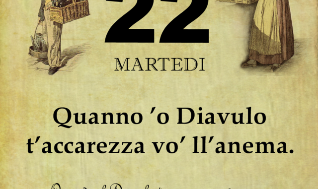 ‘O PRUVERBIO D’ ‘O JUORNO. Martedì 22 maggio 2018 22/05/2018 binews.it ATTUALITA', Il Proverbio del Giorno 0 di Gianni Polverino Quanno ’o Diavulo t’accarezza vo’ ll’anema. Quando il Diavolo ti accarezza è segno che vuole l‘anima.