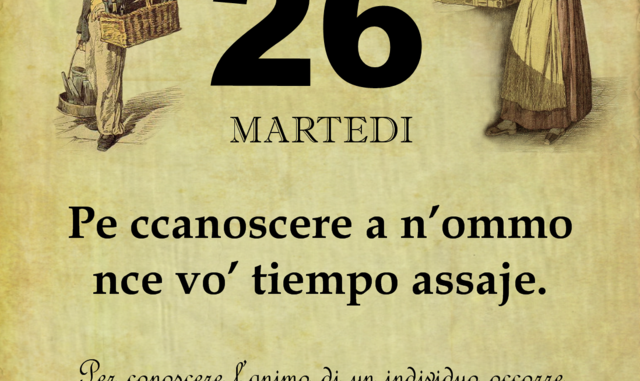 ‘O PRUVERBIO D’ ‘O JUORNO. Martedì 26 giugno 2018 26/06/2018 binews.it ATTUALITA', EVIDENZA, Il Proverbio del Giorno 0 di Gianni Polverino Pe ccanoscere a n’ommo nce vo’ tiempo assaje. Per conoscere l’animo di un individuo occorre un lungo periodo di frequentazione.