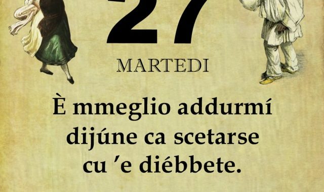 ‘O PRUVERBIO D’ ‘O JUORNO. Martedì 27 agosto 2019 27/08/2019 binews.it ATTUALITA', EVIDENZA, Il Proverbio del Giorno 0 di Gianni Polverino È mmeglio addurmí dijúne ca scetarse cu ’e diébbete. Meglio fare dei grossi sacrifici che contrarre debiti.