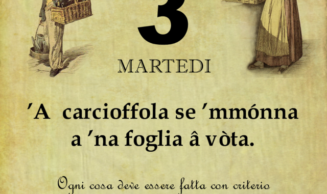 ‘O PRUVERBIO D’ ‘O JUORNO. Martedì 3 luglio 2018 03/07/2018 binews.it ATTUALITA', EVIDENZA, Il Proverbio del Giorno 0 di Gianni Polverino ’A carcioffola se ’mmónna a ’na foglia â vòta. Ogni cosa deve essere fatta con criterio e con gradualità.