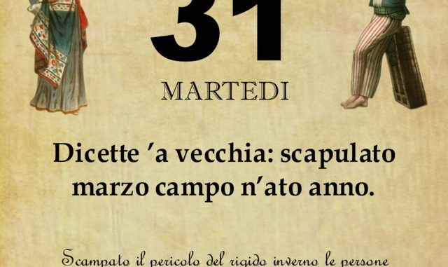‘O PRUVERBIO D’ ‘O JUORNO. Martedì 31 marzo 2020 31/03/2020 binews.it ATTUALITA', EVIDENZA, Il Proverbio del Giorno 0 di Gianni Polverino Dicette ’a vecchia: scapulato marzo campo n’ato anno. Scampato il pericolo del rigido inverno le persone anziane possono sperare in un nuovo anno.