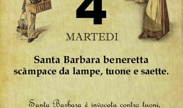 Santa Barbara beneretta scàmpace da lampe, tuone e saette. Santa Barbara è invocata contro tuoni, lampi ed esplosioni.