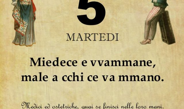 ‘O PRUVERBIO D’ ‘O JUORNO. Martedì 5 maggio 2020 05/05/2020 binews.it ATTUALITA', EVIDENZA, Il Proverbio del Giorno 0 di Gianni Polverino Miédece e vvammane, male a cchi ce va ’mmano. Medici ed ostetriche, guai se finisci nelle loro mani.