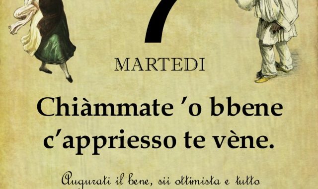 ‘O PRUVERBIO D’ ‘O JUORNO. Martedì 7 maggio 2019 07/05/2019 binews.it ATTUALITA', EVIDENZA, Il Proverbio del Giorno 0 di Gianni Polverino Chiàmmate ’o bbene c’appriesso te vène. Augurati il bene, sii ottimista e tutto andrà sempre per il meglio.