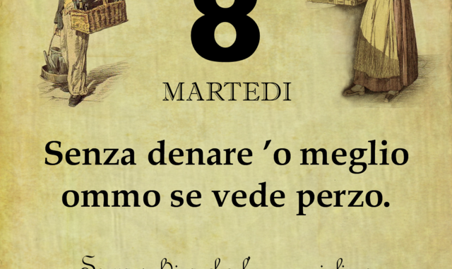 ‘O PRUVERBIO D’ ‘O JUORNO. Martedì 8 maggio 2018 08/05/2018 binews.it ATTUALITA', Il Proverbio del Giorno 0 di Gianni Polverino Senza denare ’o meglio ommo se vede perzo. Senza soldi anche l’uomo migliore si vede perduto.