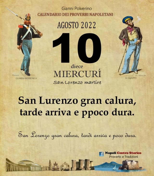 ‘O PRUVERBIO D’ ‘O JUORNO . Mercoledì 10 agosto 2022