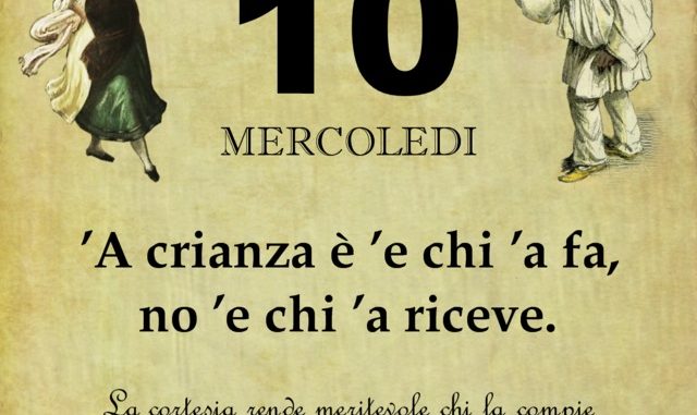‘O PRUVERBIO D’ ‘O JUORNO. Mercoledì 10 aprile 2019 10/04/2019 binews.it ATTUALITA', EVIDENZA, Il Proverbio del Giorno 0 di Gianni Polverino ’A crianza è ’e chi ’a fa, no ’e chi ’a riceve. La cortesia rende meritevole chi la compie e no chi la riceve.