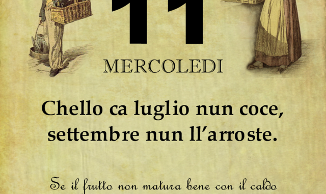 ‘O PRUVERBIO D’ ‘O JUORNO. Mercoledì 11 luglio 2018 11/07/2018 binews.it ATTUALITA', EVIDENZA, Il Proverbio del Giorno 0 di Gianni Polverino Chello ca luglio nun coce, settembre nun ll’arroste. e il frutto non matura bene con il caldo di luglio, perderà di sapore e qualità.