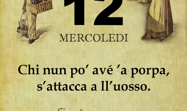 ‘O PRUVERBIO D’ ‘O JUORNO. Mercoledì 12 settembre 2018 12/09/2018 binews.it ATTUALITA', Il Proverbio del Giorno 0 di Gianni Polverino Chi nun po’ avé ’a porpa, s’attacca a ll’uosso. E’ meglio accontentarsi del “poco“piuttosto che non avere nulla.
