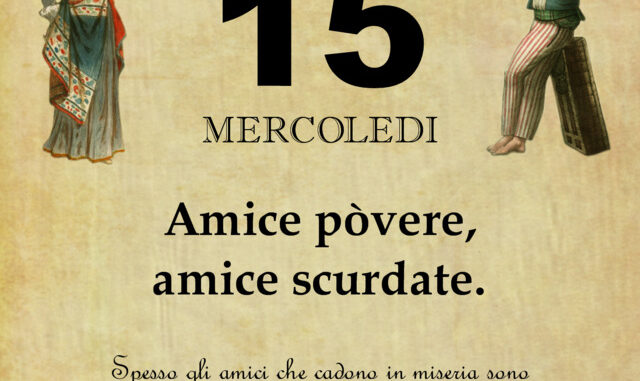 ‘O PRUVERBIO D’ ‘O JUORNO. Mercoledì 15 luglio 2020 15/07/2020 binews.it ATTUALITA', EVIDENZA, Il Proverbio del Giorno 0 di Gianni Polverino Amice pòvere, amice scurdate. Spesso gli amici che cadono in miseria sono purtroppo presto dimenticati.