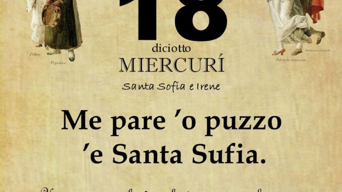 ‘O PRUVERBIO D’ ‘O JUORNO. Mercoledì 18 settembre 2024 18/09/2024 binews.it ATTUALITA', EVIDENZA, Il Proverbio del Giorno 0 di Gianni Polverino Me pare ’o puzzo ’e Santa Sufia. Un pozzo senza fondo, riferito a persone che non si accontentano mai.