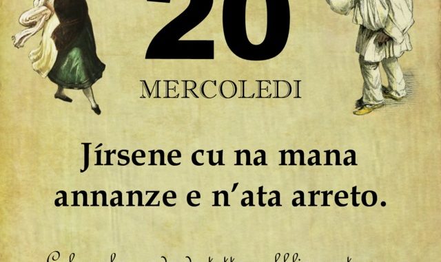 ‘O PRUVERBIO D’ ‘O JUORNO. Mercoledì 20 novembre 2019 20/11/2019 binews.it ATTUALITA', EVIDENZA, Il Proverbio del Giorno 0 di Gianni Polverino Jírsene cu na mana annanze e n’ata arreto. Coloro che, perdendo tutto, pubblicamente, sono costretti a subire anche l’umiliazione personale.
