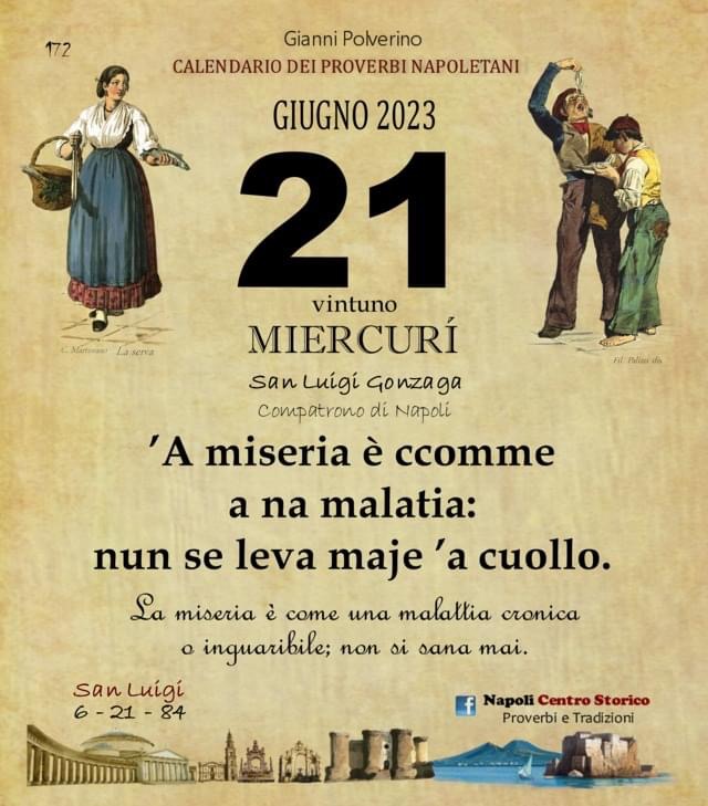 ‘O PRUVERBIO D’ ‘O JUORNO. Mercoledì 21 giugno 2023