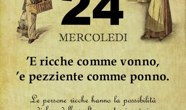 ‘O PRUVERBIO D’ ‘O JUORNO. Mercoledì 24 ottobre 2018 24/10/2018 binews.it ATTUALITA', Il Proverbio del Giorno 0 di Gianni Polverino ’E ricche comme vonno, ’e pezziente comme ponno. Le persone ricche hanno la possibilità di fare delle scelte, mentre i poveri purtroppo devono accontentarsi.