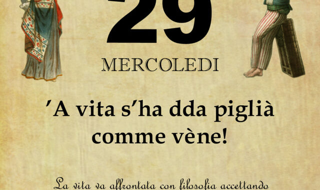 ‘O PRUVERBIO D’ ‘O JUORNO. Mercoledì 29 luglio 2020 29/07/2020 binews.it ATTUALITA', EVIDENZA, Il Proverbio del Giorno 0 di Gianni Polverino ’A vita s’ha dda piglià comme vène! La vita va affrontata con filosofia accettando con serenità il buono e il cattivo.