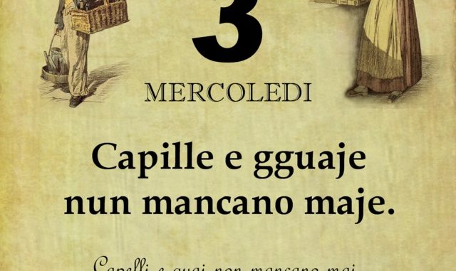 ‘O PRUVERBIO D’ ‘O JUORNO. Mercoledì 3 ottobre 2018 03/10/2018 binews.it ATTUALITA', Il Proverbio del Giorno 0 di Gianni Polverino Capille e gguaje nun mancano maje. Capelli e guai non mancano mai.