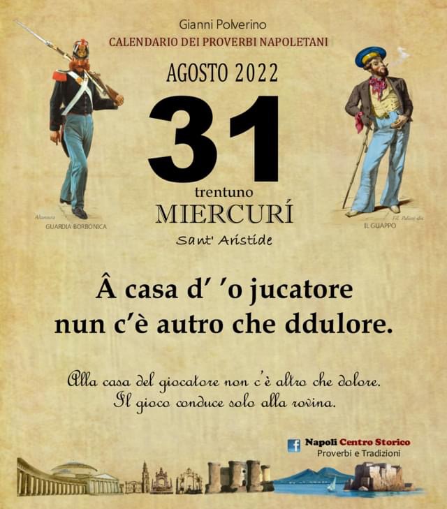 ‘O PRUVERBIO D’ ‘O JUORNO. Mercoledì 31 agosto 2022