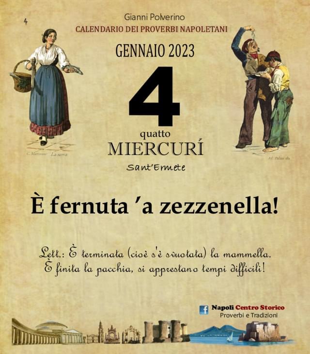 ‘O PRUVERBIO D’ ‘O JUORNO. Mercoledì 4 gennaio 2023