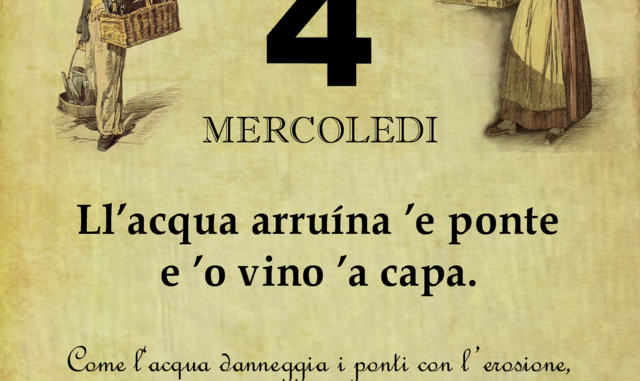 Ll’acqua arruína ’e ponte e ’o vino ’a capa. Come l‘acqua danneggia i ponti con l’erosione, il vino danneggia la mente degli uomini.