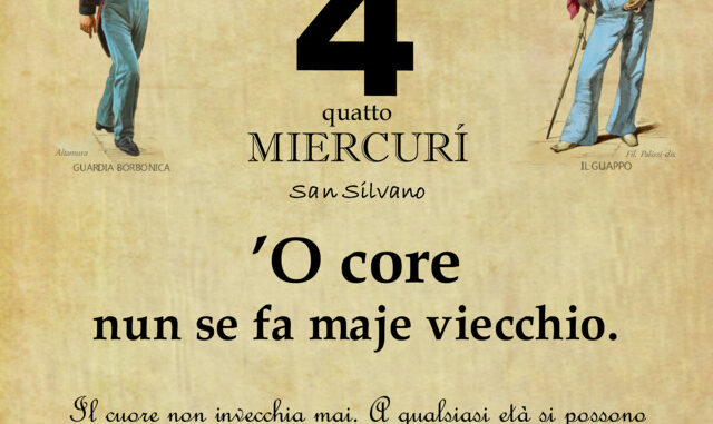 ‘O PRUVERBIO D’ ‘O JUORNO. Mercoledì 4 maggio 2022 04/05/2022 binews.it ATTUALITA', EVIDENZA, SANT'Oggi 0 di Gianni Polverino ’O core nun se fa maje viecchio. Il cuore non invecchia mai. A qualsiasi età si possono avere sentimenti, provare emozioni, sentire passioni.