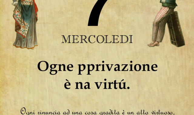 ‘O PRUVERBIO D’ ‘O JUORNO. Mercoledì 7 ottobre 2020 07/10/2020 binews.it ATTUALITA', EVIDENZA, Il Proverbio del Giorno 0 di Gianni PolverinoOgne pprivazione è na virtú.Ogni rinuncia ad una cosa gradita è un atto virtuoso, anche se molte volte non volontario.