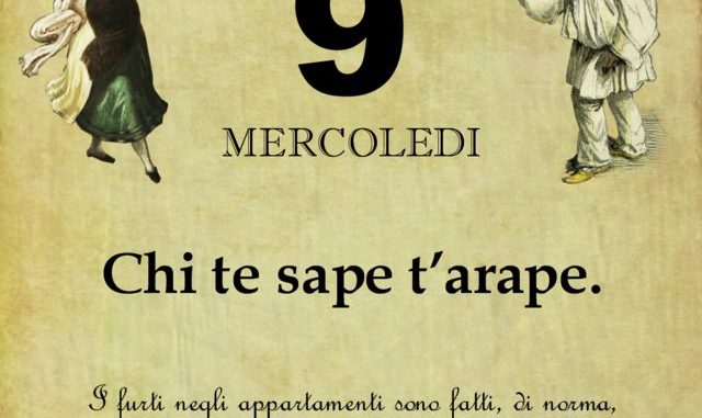 Chi te sape t’arape. I furti negli appartamenti sono fatti, di norma, da quelli che conoscono bene le abitudini della casa. O PRUVERBIO D O JUORNO. Mercoledì 9 ottobre 2019