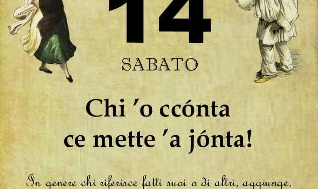 ‘O PRUVERBIO D’ ‘O JUORNO. Sabato 14 dicembre 2019 14/12/2019 binews.it ATTUALITA', EVIDENZA, Il Proverbio del Giorno 0 di Gianni Polverino Chi ’o ccónta ce mette ’a jónta! In genere chi riferisce fatti suoi o di altri, aggiunge, di suo, dettagli del tutto immaginari.
