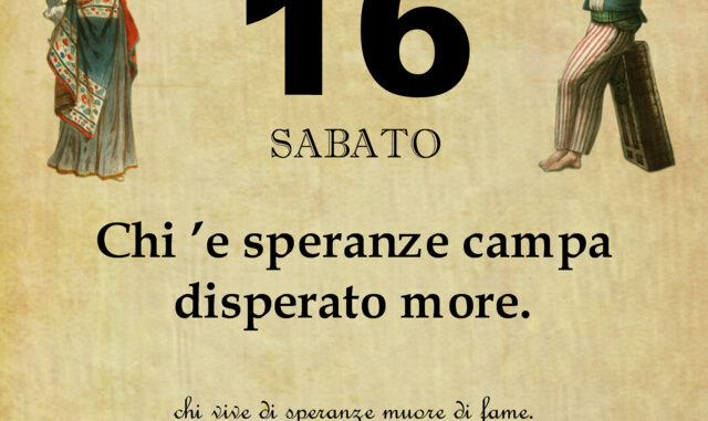 ‘O PRUVERBIO D’ ‘O JUORNO. Sabato 16 maggio 2020 16/05/2020 binews.it ATTUALITA', EVIDENZA, Il Proverbio del Giorno 0 di Gianni Polverino Chi ’e speranze campa disperato more. chi vive di speranze muore di fame.