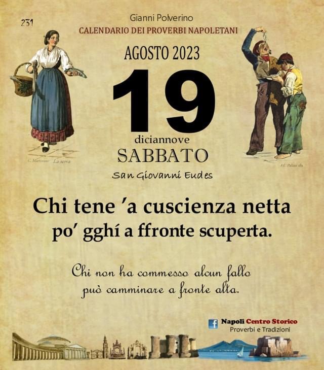 ‘O PRUVERBIO D’ ‘O JUORNO. Sabato 19 agosto 2023