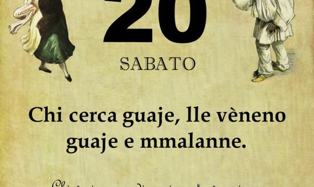 ‘O PRUVERBIO D’ ‘O JUORNO. Sabato 20 aprile 2019 20/04/2019 binews.it ATTUALITA', EVIDENZA, Il Proverbio del Giorno 0 di Gianni Polverino Chi cerca guaje, lle vèneno guaje e mmalanne. Chi va in cerca di guai, ne trova a josa.