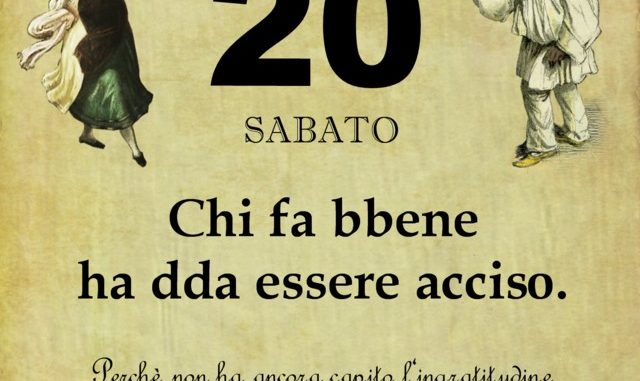 ‘O PRUVERBIO D’ ‘O JUORNO. Sabato 20 luglio 2019 20/07/2019 binews.it ATTUALITA', EVIDENZA, Il Proverbio del Giorno 0 di Gianni Polverino Chi fa bbene ha dda essere acciso. Perchè non ha ancora capito l‘ingratitudine e la irriconoscenza umana.