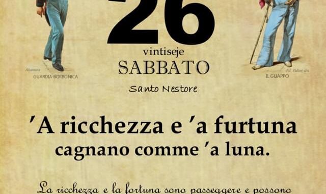 ‘O PRUVERBIO D’ ‘O JUORNO. Sabato 26 febbraio 2022 26/02/2022 binews.it ATTUALITA', EVIDENZA, Il Proverbio del Giorno 0 di Gianni Polverino’A ricchezza e ’a furtuna cagnano comme ’a luna. La ricchezza e la fortuna sono passeggere e possono svanire in qualsiasi momento.