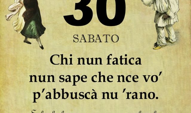 ‘O PRUVERBIO D’ ‘O JUORNO. Sabato 30 marzo 2019 30/03/2019 binews.it ATTUALITA', EVIDENZA, Il Proverbio del Giorno 0 di Gianni Polverino Chi nun fatica nun sape che nce vo’ p’abbuscà nu ’rano. Solo chi lavora può capire i sacrifici che occorre fare per guadagnarsi da vivere.