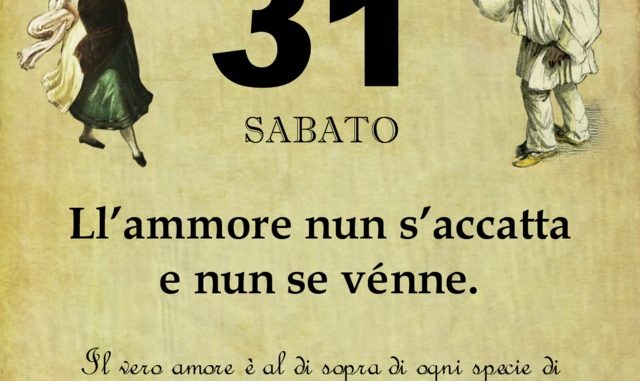 ‘O PRUVERBIO D’ ‘O JUORNO. Sabato 31 agosto 2019 31/08/2019 binews.it ATTUALITA', EVIDENZA, Il Proverbio del Giorno 0 di Gianni Polverino Ll’ammore nun s’accatta e nun se vénne. Il vero amore è al di sopra di ogni specie di interesse perchè è genuino e spassionato.