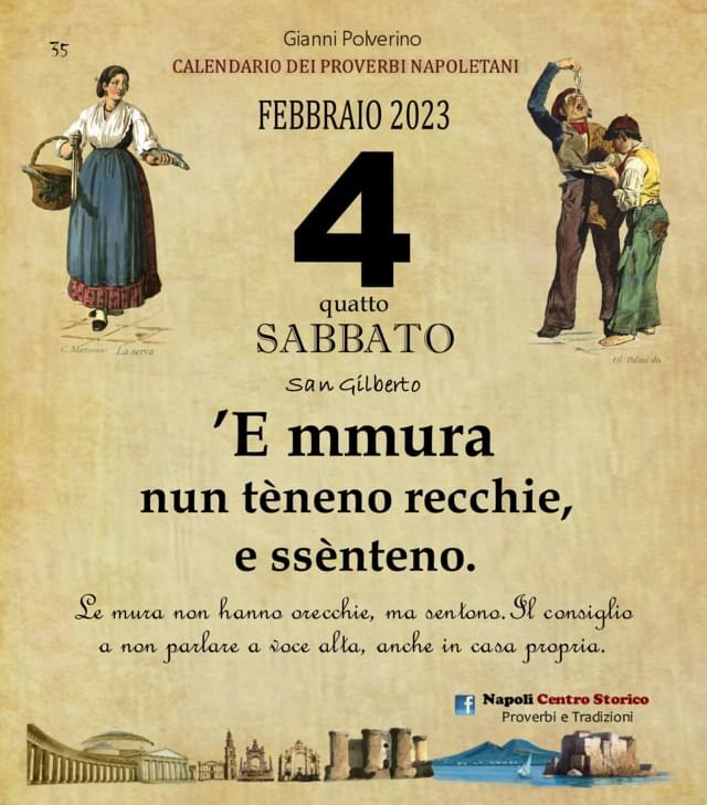 ‘O PRUVERBIO D’ ‘O JUORNO. Sabato 4 febbraio 2023