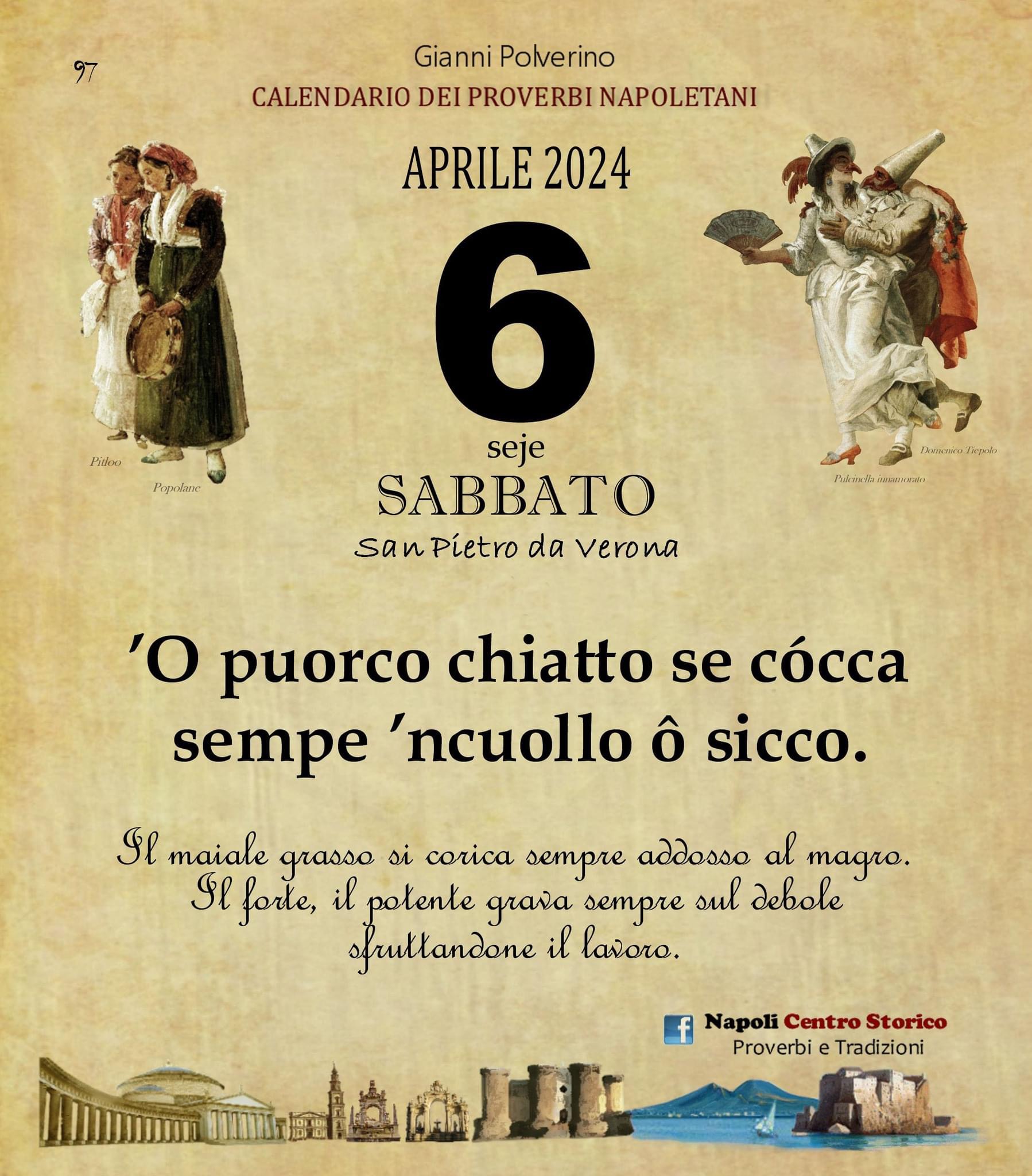 ‘O PRUVERBIO D’ ‘O JUORNO. Sabato 6 aprile 2024