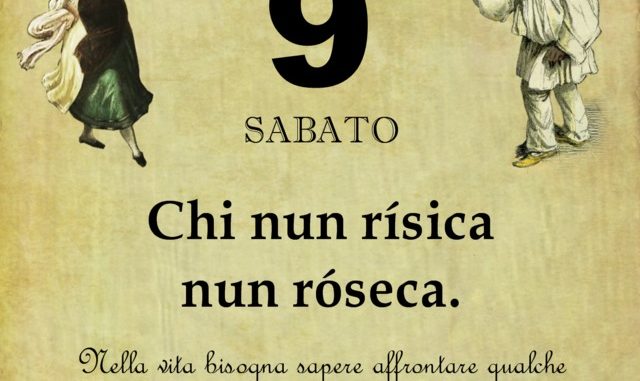 ‘O PRUVERBIO D’ ‘O JUORNO. Sabato 9 marzo 2019 09/03/2019 binews.it ATTUALITA', EVIDENZA, Il Proverbio del Giorno 0 di Gianni Polverino Chi nun rísica nun róseca. Nella vita bisogna sapere affrontare qualche rischio per cercare di migliorare la propria posizione