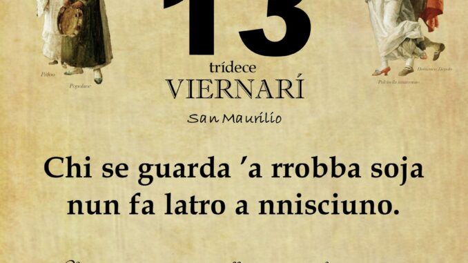 ‘O PRUVERBIO D’ ‘O JUORNO. Venerdì 13 settembre 2024 13/09/2024 binews.it Almanacco, ATTUALITA', EVIDENZA 0 di Gianni PolverinoChi se guarda ’a rrobba soja nun fa latro a nnisciuno.Chi si guarda i propri affari non incolpa nessuno.